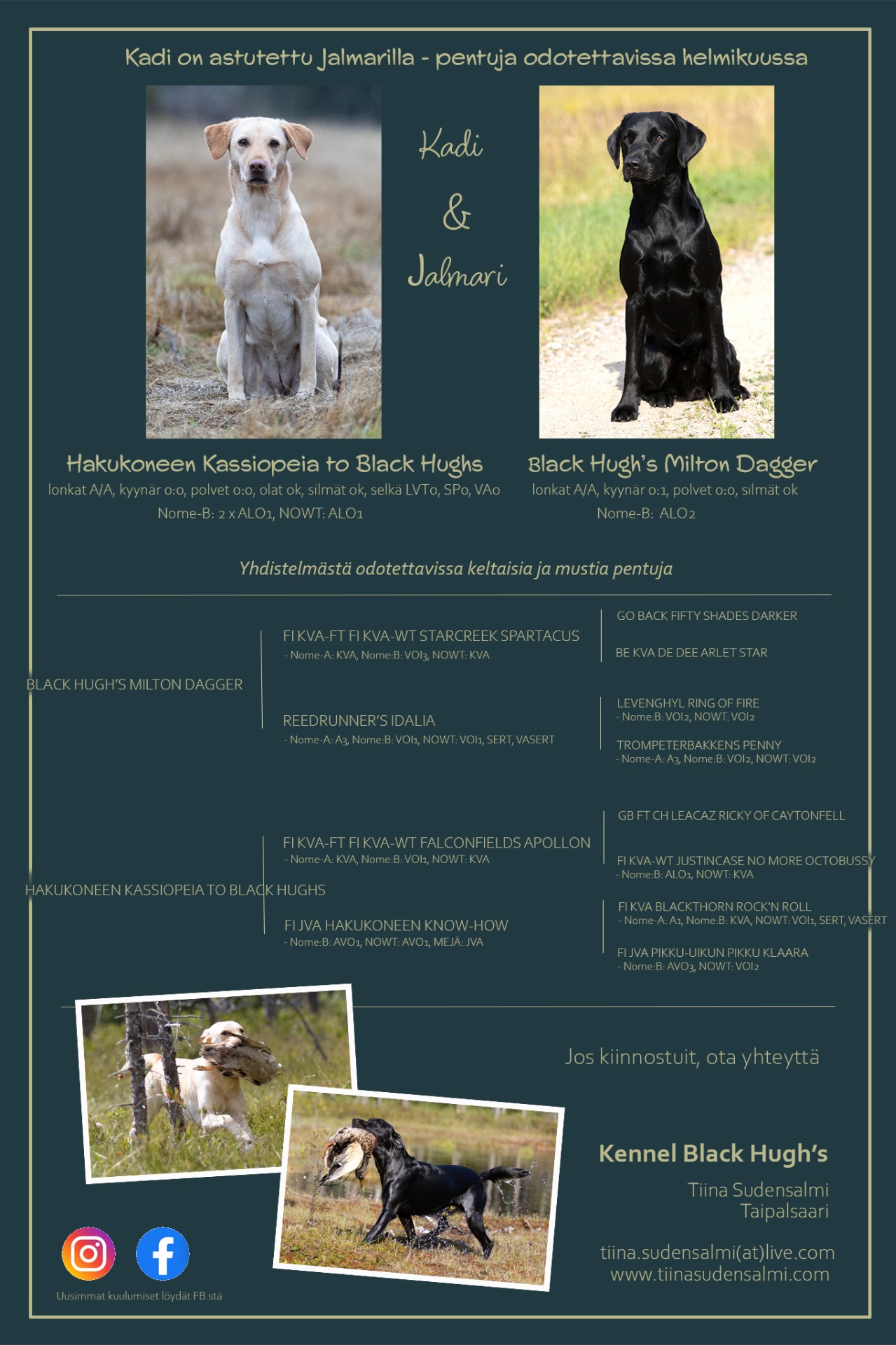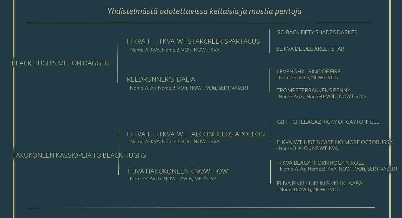 Black Hugh's Milton Dagger "Jalmari" x Hakukoneen Kassiopeia to Black Hughs "Kadi"